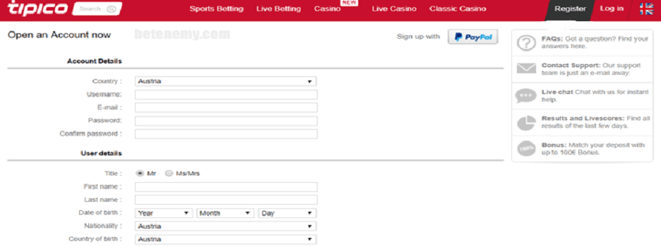 Pour les dépôts, les clients de Tipico Casino ont quelques options disponibles, dont la plupart sont des fournisseurs courants. De nombreux joueurs devraient également être heureux que la société offre également PayPal dans ses options de paiement.